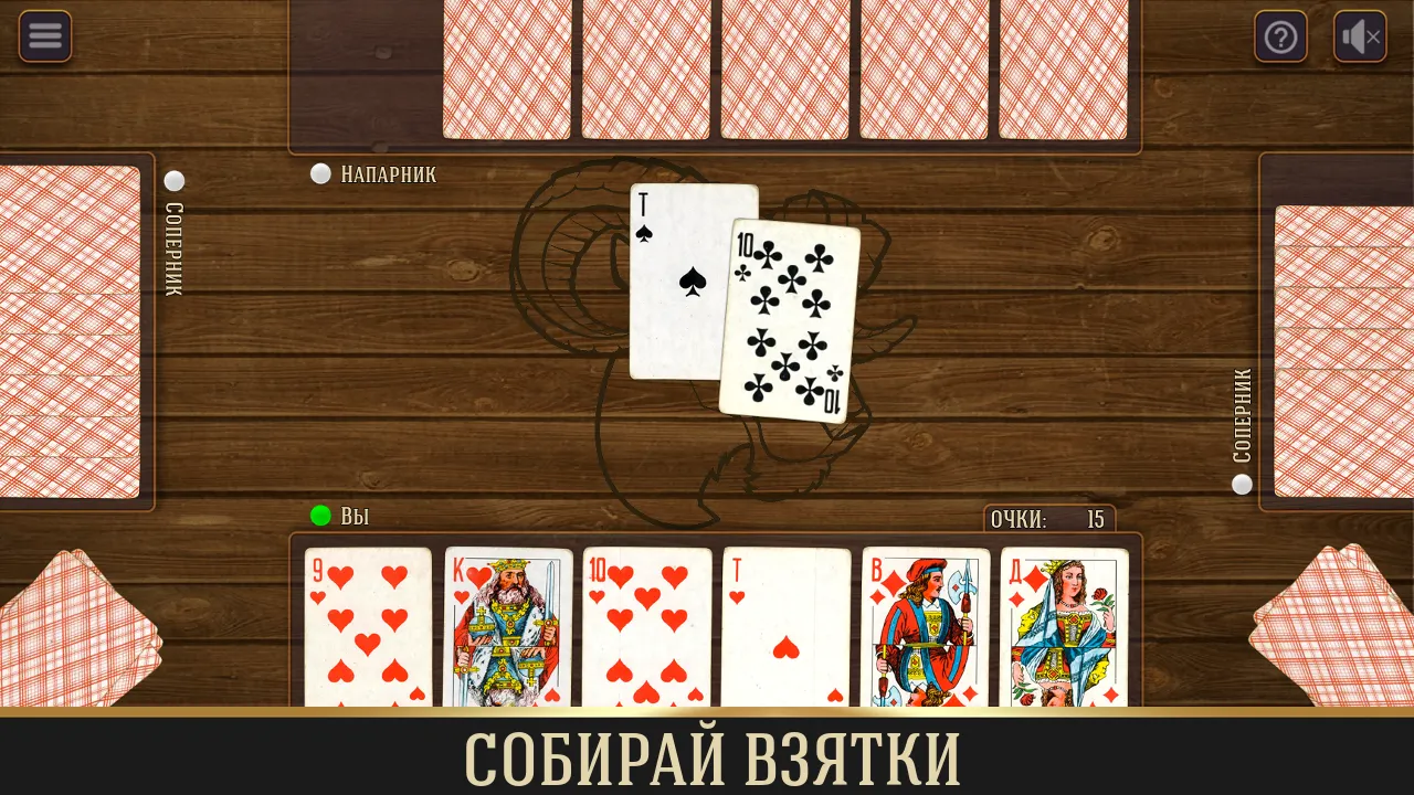 - 🤝 Работай в команде — если у партнёра нет масти, а у тебя есть, можешь подыграть ему, отдав взятку или, наоборот, забрав её.